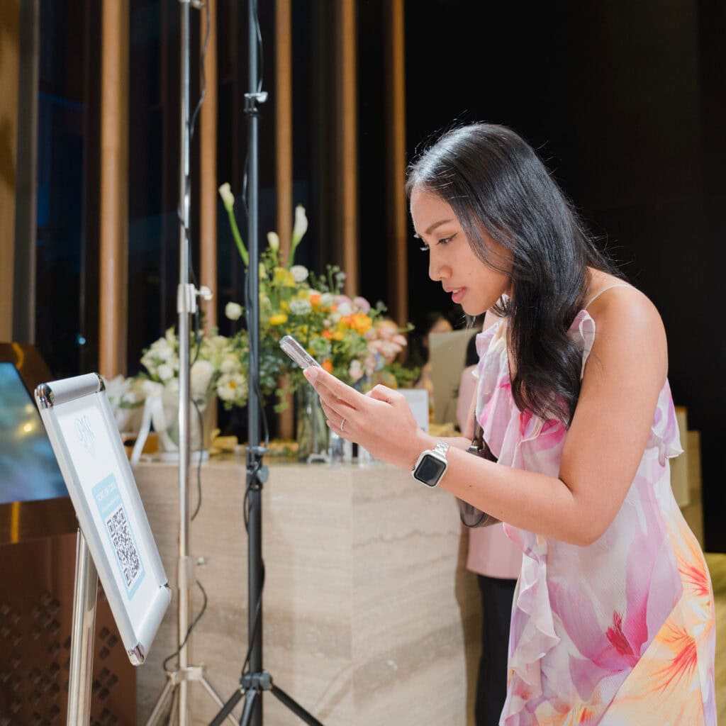 วางป้าย QR Code ไว้ในจุดที่แขกสามารถมองเห็นได้ง่าย ไม่ว่าจะ Print ออกมา หรือเปิดผ่านโปรแกรม เมื่อแขกแสกนจะปรากฎรูปภาพในอัลบั้มของคุณโดยอัตโนมัติ เหมาะสำหรับจัดเก็บรูปภาพในงานแต่งงาน, กิจกรรมภายในองค์กร, งานวิ่ง หรืองานฉลองต่างๆ